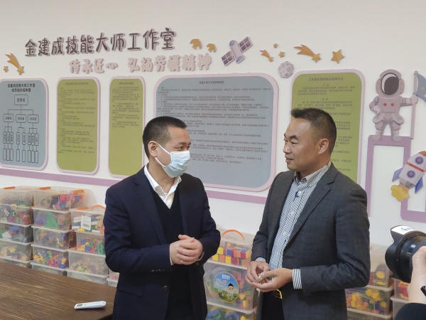 在金董的带领下,吴县长等领导一行实地考察了企业的生产经营环境,参观了公司的企业文化、公司展厅、省级技能大师工作室。实地参观公司的产品,仔细询问企业在生产经营、产业布局、技术研发创新、战略规划等方面的情况,并详细听取企业诉求和意见建议。